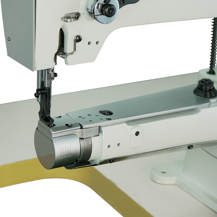 • Compound feed, walking foot mechanism (alternating presser feet + needle feed + feed dog) to help feed thick & bulky materials